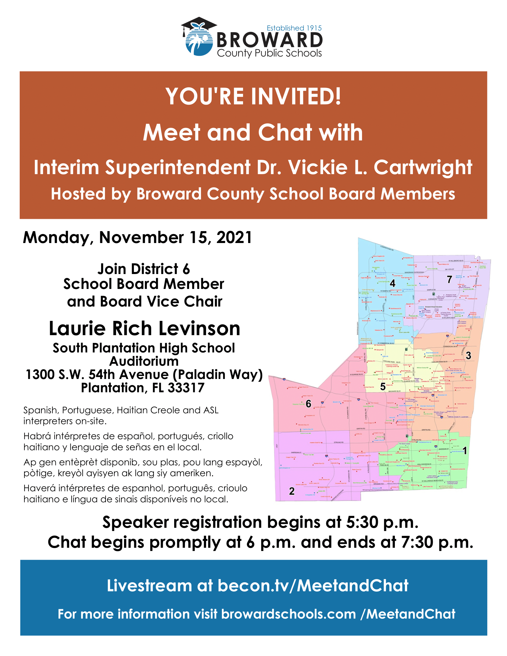 Broward Schools On Twitter Meet And Chat With Interim Supt Suptvcartwright On November 15 6 P M At Sphsactivities Hosted By District 6 School Board Member Laurie Rich Levinson Question Submission Begins At